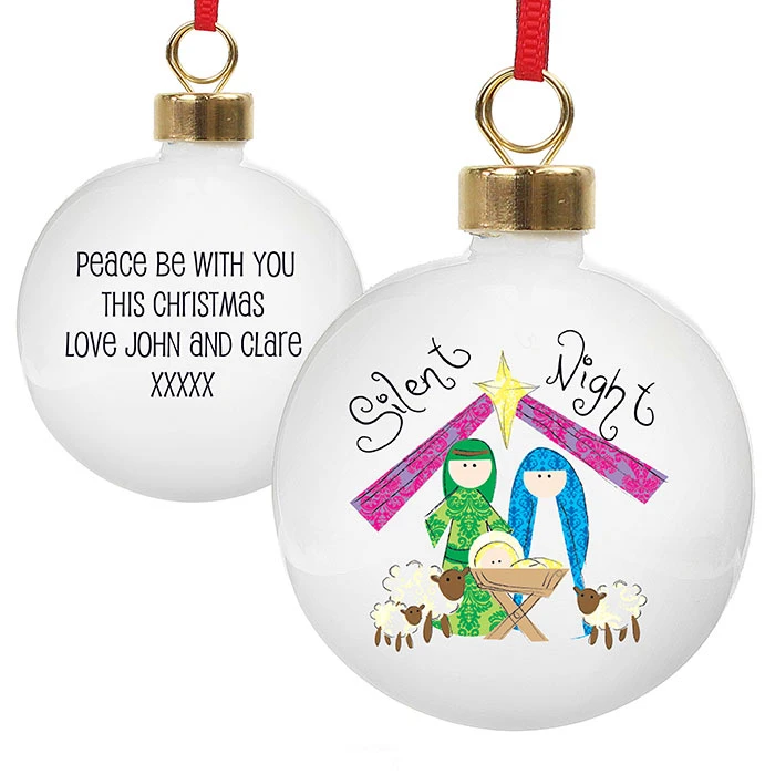- The wording ‘Silent Night’ on the front of the bauble is standard text.