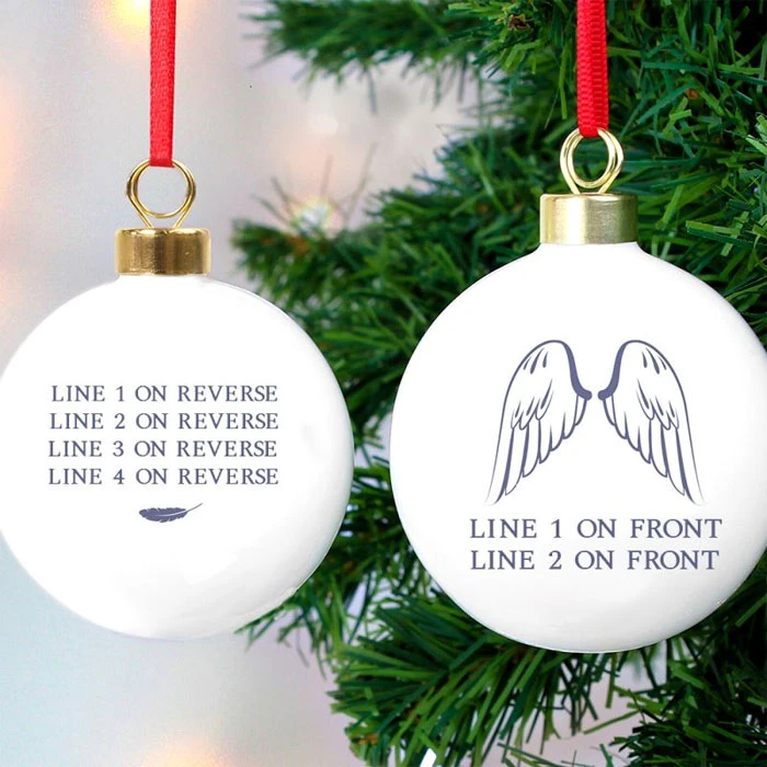 - Personalised on the reverse of the bauble over 4 lines (up to 20 characters per line)