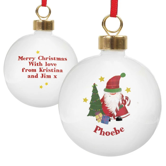 This fun Scottish-themed personalised ceramic Tartan Santa Christmas tree bauble is the ideal keepsake for someone north of the border! Professionally personalised on the front and reverse. Please check your personalisation carefully before submitting your order.