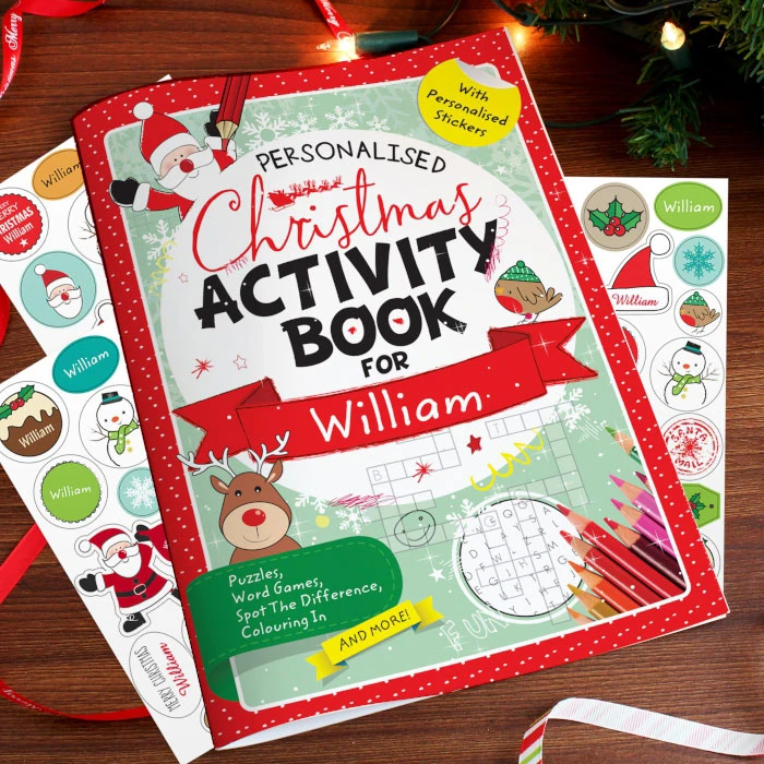 - Personalised Christmas activity book with stickers.