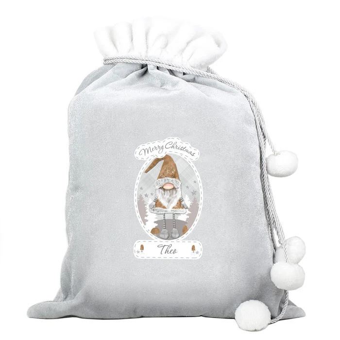 - Personalised silver Christmas Gonk pompom Santa sack.