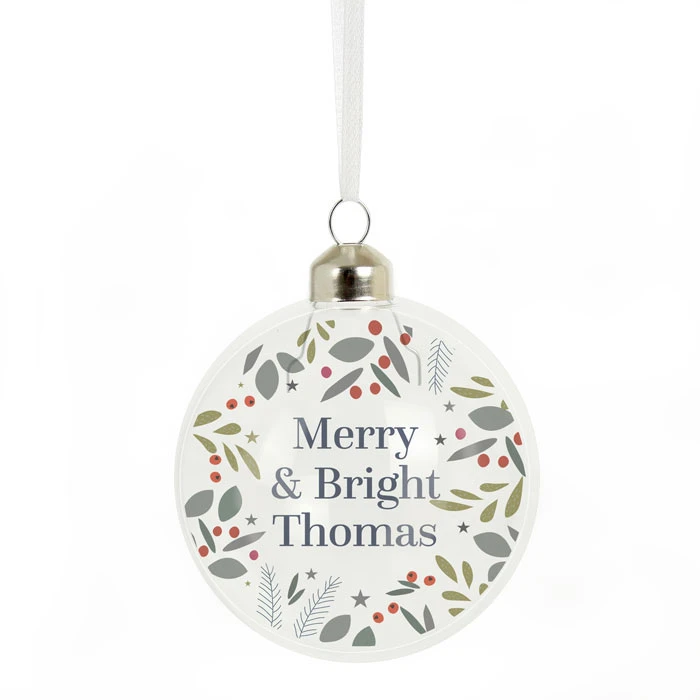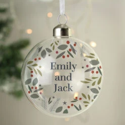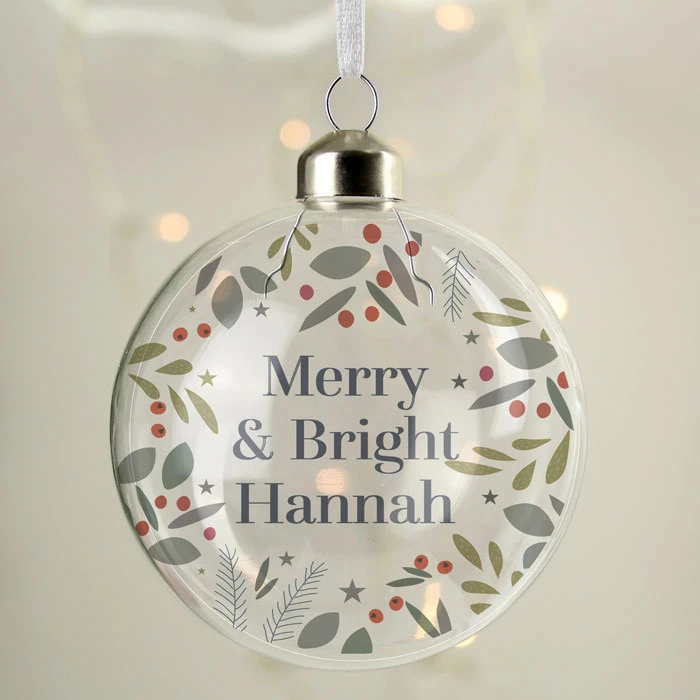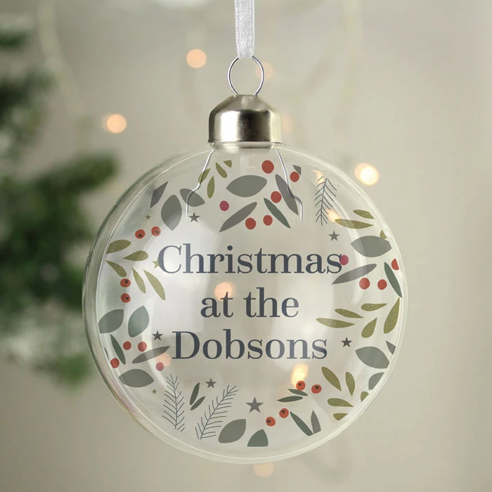 - Personalised festive Christmas tree bauble.