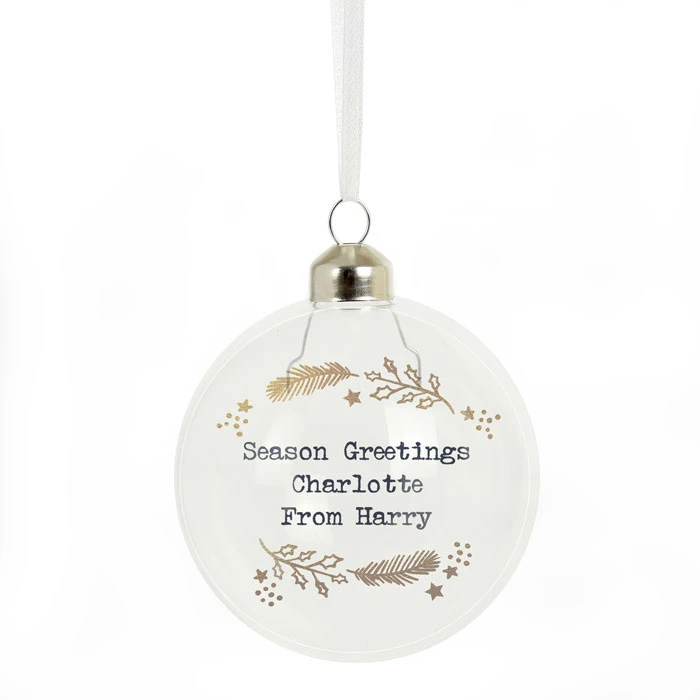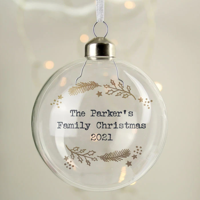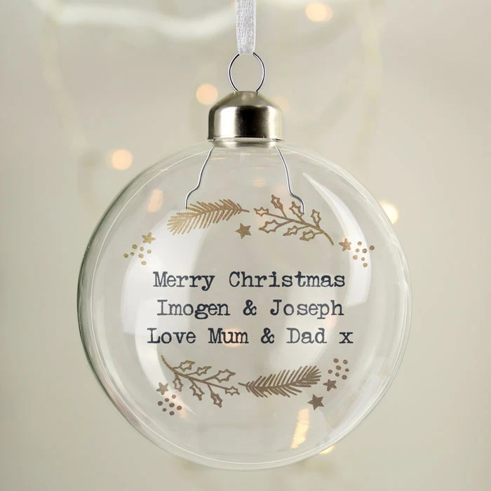 - Personalised gold wreath Christmas tree bauble.