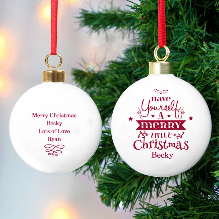 - Personalised ‘Merry Little Christmas’ tree bauble.