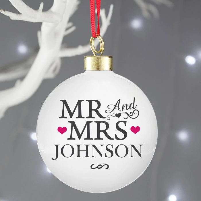 This charming little bauble makes a lovely idea for Christmas weddings or for a married couple spending a special first Christmas together.