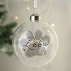 This glass personalised pet pawprint Christmas tree bauble is a great way to add a personal touch to your Christmas tree. The bauble come professionally personalised with any name. Please check your personalisation carefully before submitting your order.