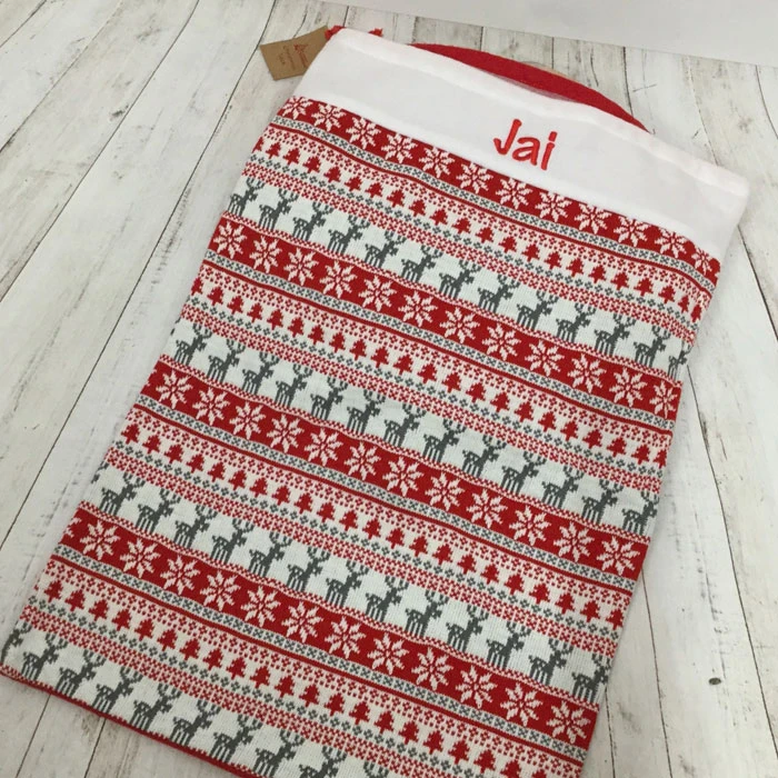 This luxury red and white Nordic style Christmas sack comes professionally personalised with any name ensuring Santa doesn’t mix up the pressies! A lovely Christmas sack which can be re-used year after year. Please check your personalisation carefully before submitting your order.