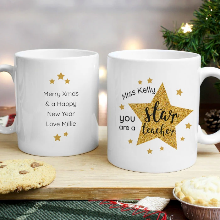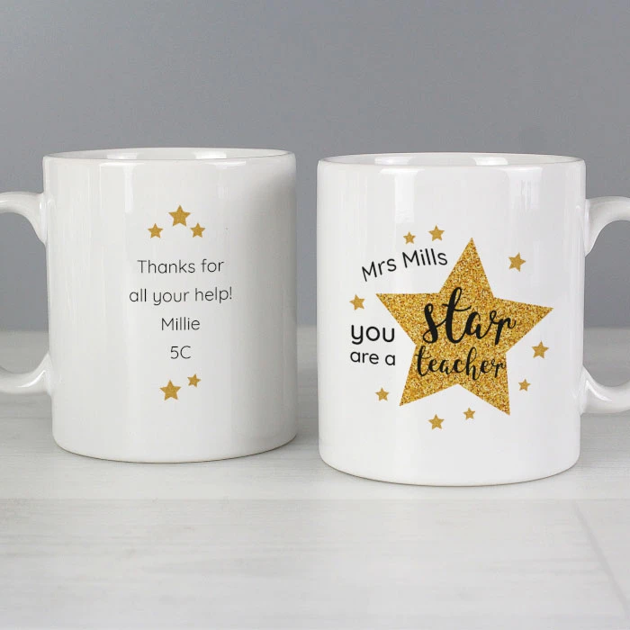 Make every teacher’s coffee break special with this fabulous personalised star teacher ceramic mug. The mug is printed with the standard text ‘You are a star teacher’ along with your choice of name and personal message.