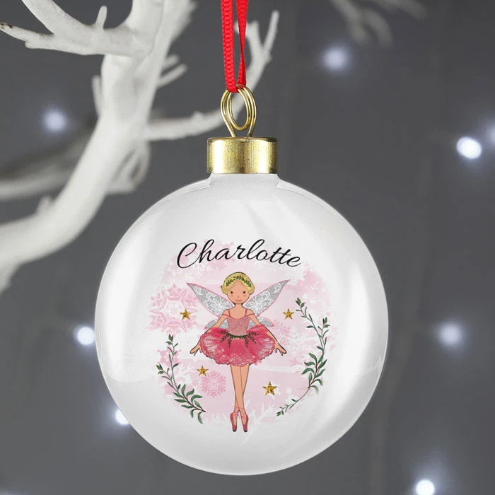 This gorgeous personalised sugar plum fairy ceramic Christmas tree bauble makes the ideal choice for a little girl this Christmas. The glittery pink and gold bauble comes professionally personalised with a name on the front and up to 4 lines of text on the reverse. Please check your personalisation carefully before submitting your order.