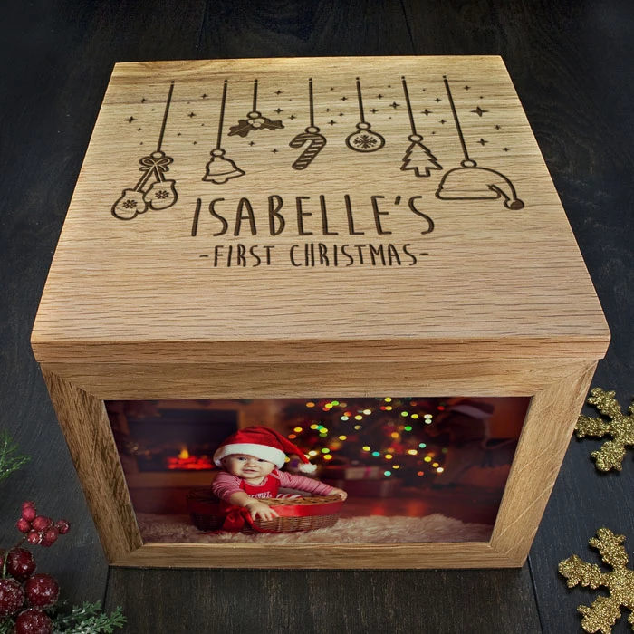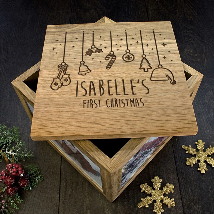 We think this stunning oak photo box would make the ultimate personalised Christmas gift for a little boy or girl celebrating that special first Christmas.